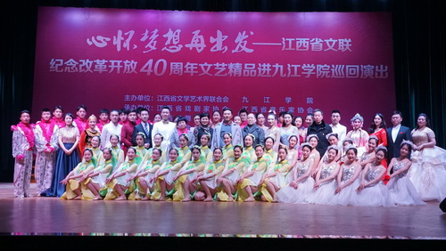 为深入学习贯彻习近平新时代中国特色社会主义思想和党的十九大精神,庆祝改革开放40周年,坚持以人民为中心的创作导向,走与时代相结合的文艺道路,结合“深入生活、扎根人民”主题实践活动和省文联“文艺联高校”的战略部署。12月13日,“心怀梦想再出发——江西省文联纪念改革开放40周年文艺精品进高校”系列活动在我校举行。