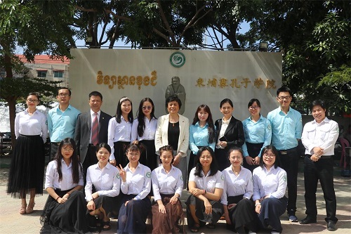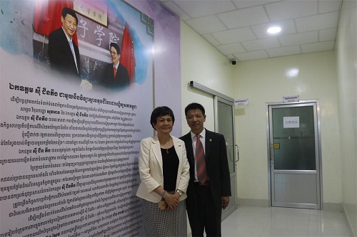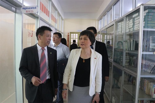 国务院参事许琳一行在柴克清院长的陪同下参观了柬埔寨孔子学院,对柬埔寨孔子学院从无到有、从少到多的软硬件建设表示欣慰和认可,并表示,柬埔寨孔子学院这九年来取得了令人瞩目的成绩,要继续努力,再创辉煌!