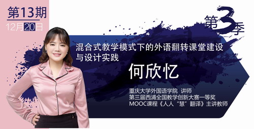 本次直播中,来自重庆大学外国语学院、两门在线课程主讲何欣忆老师与您分享在过去3年中,她在翻转教学路上,对于上述问题的所行所思,向您讲述在混合式教学模式下,科技改变教学、设计成就学习的教学故事。