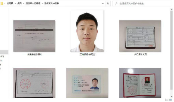 (2) 身份证(正反面)、户口本(首页和本人页)、退伍证(转业证、军队离退休证、复员证或者其他退役军人身份证明材料,若证件丢失或真伪存疑,需同时提供加盖人事档案保管单位公章的入伍登记表、退役登记表复印件)、伤残证、烈士证、因公牺牲军人证明或病故军人证明等。此项需纸质和电子照片。