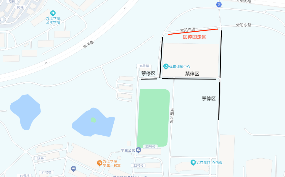 4.北区体育训练中心为报到点,该区域周边少量车位设置为报到现场公务车辆停放区(车队迎新工作车、指挥部现场办公的公务车辆),保卫处将提前发放临时通行证,公务车辆可凭临时通行证驶入该区域按指引停放。报到现场工作人员私车请从立信楼与网球场中间通道进入渊明大道,在工作人员指引下有序停放到渊明大道两侧。体育学院训练中心附近上课教师车辆,两南山教职工车辆此时间段也请克服困难,将车辆停放到渊明大道指定区域。