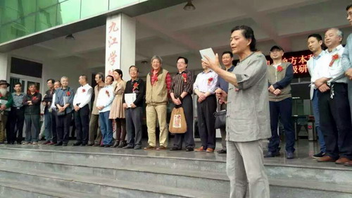 5月27日上午,由九江写生画会、九江学院艺术学院联合举办的,“守望家园”一一九江写生画会作品展暨写生画会作品集首发式,在逸夫图书馆展厅隆重开幕。校党委书记郑翔参观了展览。副校长纪岗昌,艺术学院党委书记王春生,副院长虞斌,市文联副主席段虹,市文联副主席、市美协主席宋跃林先生,市文联作家协会主席蔡勋先生,以及知名书画家崔廷瑶,徐东林,杨豹等老師和同学们600余人出席了开幕式,开幕仪式由艺术学院胡有源教授主持。