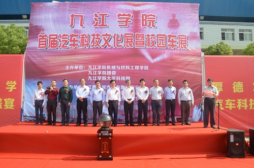 产学研齐合作,创新创业育人才。6月4日至5日,九江学院首届汽车科技文化展暨校园车展在北区田径场顺利举行,本次活动为期两天。4日上午9:00举行了活动开幕式,九江学院副校长王万山,九江市政府副秘书长宋志龙,江西昌河汽车有限责任公司副总经理方群飞,共青团九江市委副书记周辉红,江西省交通流通协会常务副会长章新挺,九江知行汽车服务有限公司董事长黄继华,九江学院科研处处长王侃民,保卫处处长张晓明,实验中心主任方向明,团委书记闫来英,宣传部副部长陈晓松,机材学院院长张德勤,机材学院党委副书记陈胜才等领导出席了本次活动。此外,参加本次活动的还有各大媒体和来自各企业的来宾,以及来自九江学院宣传部、党委、大学科技园的领导和机材学院的师生代表。