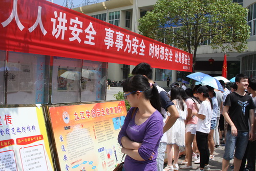 根据省安全生产委员会和省教育厅的统一部署,6月13日上午,以“强化安全发展观念,提升师生安全素质”为主题的九江学院2016年“安全生产月”宣传咨询日活动在学校三食堂广场拉开帷幕。王万山副校长出席活动并与师生一同参观了展板。保卫处、学生处、后勤管理处及各二级学院600余名师生参加了活动。