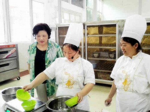 6月25日,由校工会与后勤管理处饮食服务中心联合举办的2016年教工厨艺第六期培训班在学生二食堂如期进行。上午九点,吴桃娥副校长来到培训班现场看望正教学授课大厨和教职工学员。