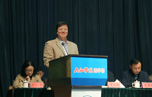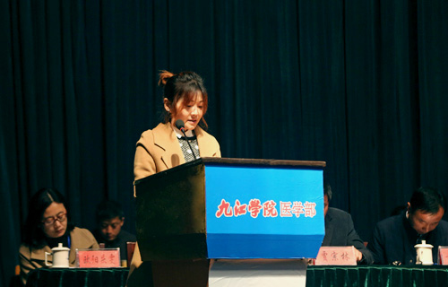 杨焱林副校长致辞,他代表学校党委行政向大会的胜利召开致以热烈的祝贺,向付出辛勤劳动的医院广大干部职工表示亲切的慰问。杨副校长指出,在过去的一年,临床医学院/附属医院按照学校党政领导的工作部署和要求,抢抓机遇,开拓创新,不断寻求新的突破,在医疗技术、教学科研、院区环境、内部管理等方面都迈上了一个新的台阶,医院建设日新月异,事业发展蒸蒸日上,令人欣喜。尤其是学科建设和教学实验实训工作,成绩突出。他表示九江学院会一如既往地支持临床医学院/附属医院的发展建设,希望该院始终坚持医教研并重的原则,不断强化教学工作,加强重点学科建设,切实提升教学和医疗水平,加快新大楼建设步伐,为实现跨越式发展奠定坚实的基础。希望全体职工撸起袖子,奋力拼搏,勇攀高峰,创造临床医学院/附属医院更加美好的明天。