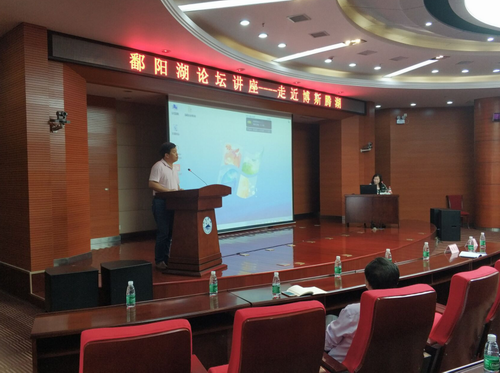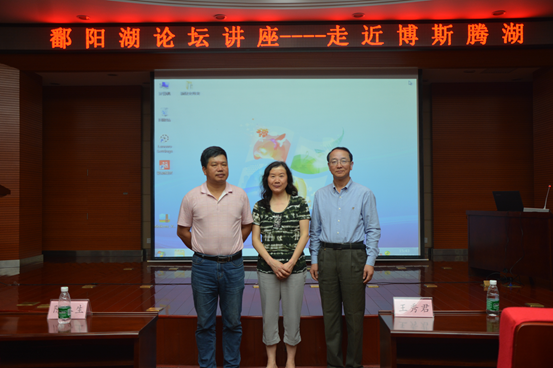 5月12日下午,鄱阳湖生态经济研究中心联合化学与环境工程学院、旅游与国土资源学院、药学与生命科学学院和经济与管理学院共同在逸夫图书馆报告厅举办鄱阳湖论坛讲座。邀请北京师范大学首席科学家,海外高层次引进人才,博士生导师王秀君教授担任主讲。讲座题目为走近博斯腾湖。副校长陈春生,我校陶春元教授、鄱阳湖中心副主任汤明、药生学院副院长张小谷、旅游学院副院长赵追及200余名师生代表参加了讲座。副校长陈春生主持了报告会。