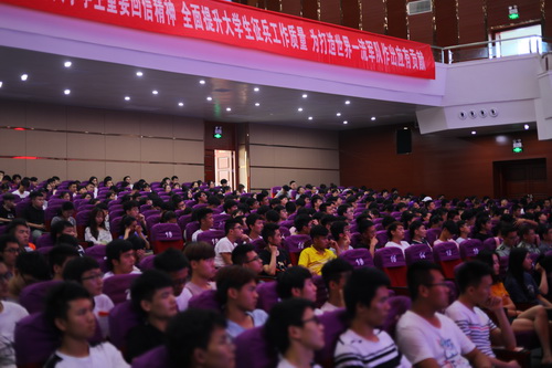 宣讲活动开始前,校党委书记赵伟、校长刘晓东会见了九江军分区司令员宋朝阳大校和其它高校分管征兵工作的校领导。