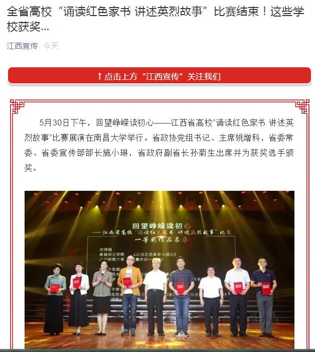 江西宣传:全省高校“诵读红色家书 讲述英烈故事”比赛结束!这些学校获奖...