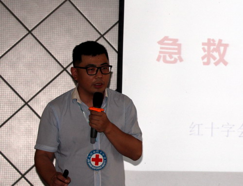 培训中,钱老师通过通过PPT演示、现场模拟操作、学生互动等方式讲授了心肺复苏和气道异物梗阻等理论知识、灾害现场的创伤救护及处理以及场景模拟等。为了使学生更深入了的了解各项救护技巧、掌握心肺复苏要领,培训老师将学员们分为二组,分别对心肺复苏等进行了实操演练、手把手向同学们传授了急救手法和注意事项,同时要求学员们熟练掌握心跳或呼吸骤停的现场急救、AED的使用、止血、包扎、骨折制动固定、搬运伤员等救护技术。最后,对学员们进行现场技能操作考核。