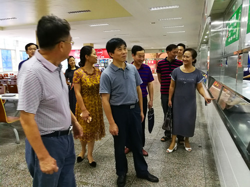 李书记一行先后到护理学院实验楼、护理学院及浔东管理办公室的办公楼、浔东食堂、护理学院学生宿舍等地进行实地调研。在护理学院实验楼,了解了学生的实验实训操作计划,听取了护理学院前期对实验室的建设规划的工作汇报。在浔东校区学生食堂,李书记仔细询问了食堂的经营情况、采购情况及卫生安全情况,他指出,要严格物资的采购,杜绝以次充好,切实保障学生的食品安全。随后,李书记一行来到学生宿舍,走访了护理学院2018级新生寝室,与新生亲切交流,了解她们的学习生活情况及遇到的困难,对学生寝室的干净整洁的环境提出了表扬。