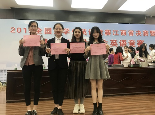 5月12-13日,在外国语学院韩琨院长、指导教师胡芳、赵宋文的带领下,我校外国语学院选派的8名同学来到江西农业大学参加全国大学生英语大赛江西省决赛暨江西省“赣江杯”大学生英语竞赛。本次比赛由江西省大学外语教学研究会和江西省外语协会共同承办。此次比赛初赛阶段全省共有近7万人参加,我校8名优秀选手脱颖而出参加了全省决赛,表现优异,取得了喜人佳绩。