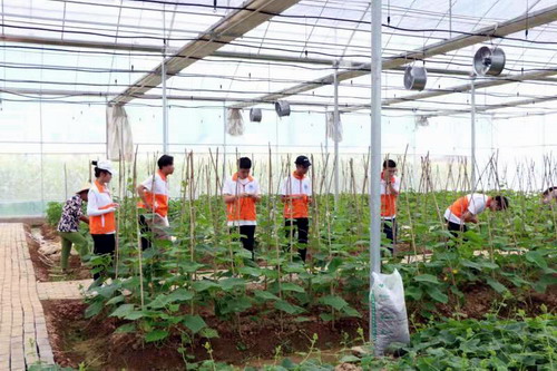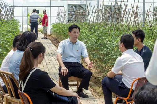 随后,马书记走进蔬菜温室现代化控制大棚查看青年投身产业振兴情况。听完蔬菜基地负责人关于有机蔬菜介绍后,马书记与来自各层面的基层一线团干和团员青年代表在大棚内围坐一起,听取大家关于基层团组织建设和团干部、团员青年如何参与乡村振兴、脱贫攻坚的意见和建议。