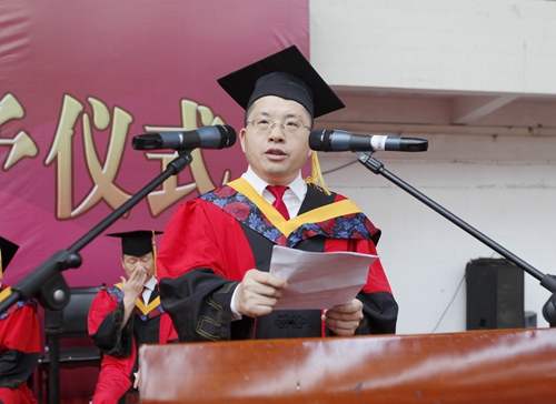 刘晓东回顾了2019届毕业生与九江学院一起成长的点滴时光。他说,几年来,我们共同努力创造了学校事业跨越发展的新局面,你们也将最美好的年华留在了九院。今夕,愿你们不负芳华,无问西东。刘晓东说,作为新时代青年,同学们生逢盛世,即将成为新时代的建设者,今年又是新中国成立70周年,同学们在这个特殊的年份学成毕业,恰逢其时。数年学海泛舟,今朝志在四方,刘晓东对同学们提出四点希望:第一,要长存家国情怀,勇于担当使命;第二,要勇于砥砺奋斗,敢于面对挑战;第三,要勤于学习实践,练就过硬本领;第四,要严于律己修身,锤炼高尚德行。他希望同学们始终保持严于律己的生活态度和高尚的道德追求,树立正确的人生观和价值观,自觉养成明德惟馨、择善而从的行为习惯,比如:积极向上、爱岗敬业、廉洁诚信、遵守秩序、尊重弱者、敬畏自然、厉行节约等等;始终恪守道德信仰、坚守正直善良,追求公平正义、引领道德风尚,努力成为践行社会主义核心价值观的示范者!衷心祝愿同学们在实现中华民族伟大复兴波澜壮阔的历史洪流中,大显身手、大展宏图!衷心祝福2019届全体毕业生前程似锦、生活幸福、一生健康平安!