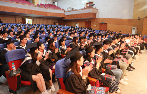 殷小平副院长向毕业生表示祝贺,盛赞同学们在校期间的刻苦学习、奋力拼搏,为自己和家长都交了一份满意的答卷,为母校争得了荣誉。临别之际,殷副院长叮嘱同学们一要注意安全,提高警惕;二要不断学习,提升自我;三要真诚待人,善待自己;四要不怕吃苦,勇于创新。希望同学们带着创新的精神和勇气,带着师长的教诲和嘱托,去创造属于自己的时代业绩,母校永远是同学们的精神家园和力量源泉。