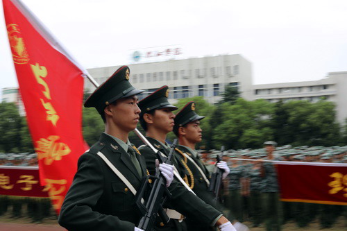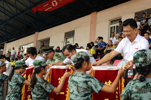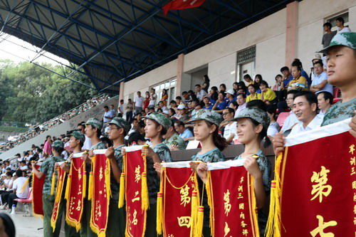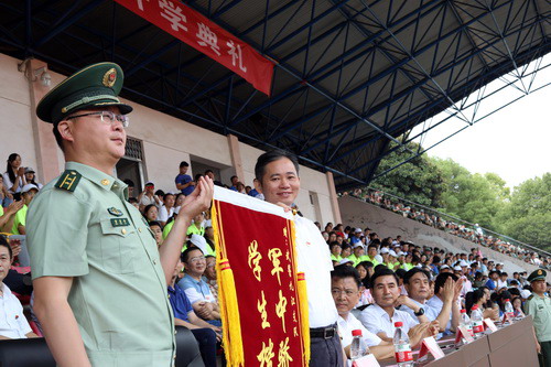 会上,校党委书记赵伟向武警九江支队参谋长曾勇华赠送了“国防卫士,学子楷模”的锦旗。至此,2019级的新生们在今天给为期十天的军训画上了一个圆满的句号。
