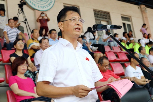 军训总结表彰大会结束后,随即进行了开学典礼。校长刘晓东作了热情洋溢的讲话。他指出,今年是新中国成立70周年,也是五四运动100周年,2019级的新同学们在一个特殊而重要的历史年份踏进大学校门,要更清晰地认清自己前进的方向与目标,更清晰地认清自己肩负的责任与使命。