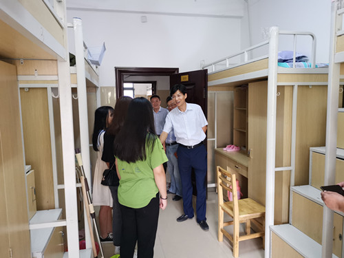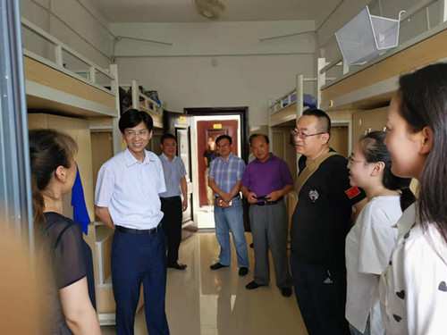 9月4日,副校长查振华来到艺术学院走访看望2019级新生及其新生家长。艺术学院党委书记王春生、副院长欧阳时来陪同。