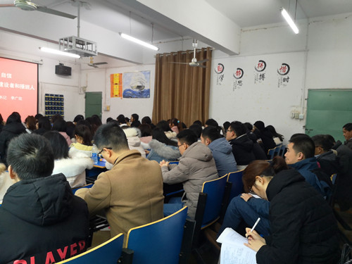 12月20日下午,校纪委书记李广欣到庐峰校区所联系班级临床医学A1721班,为其上思政课,开展“体验日”活动,体验学生生活。