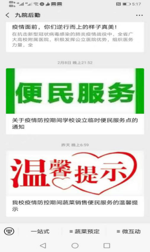 2月11日,饮服中心为进一步做好防控工作,避免现场人员逗留时间过长,经过两个晚上的通力加班,依托后勤微信公众号开通了网络预订程序,11日晚上线后效果良好,得到广大教职员工的普遍称赞。