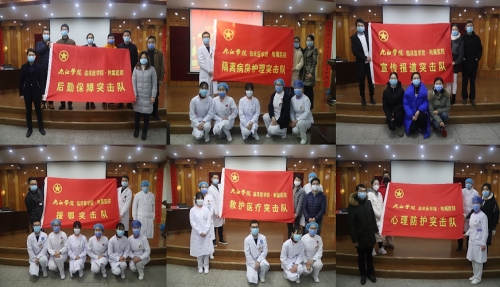 在附属医院团委积极倡议下,广大职业青年自愿踊跃报名,已组建七支队伍,突击队员达122人,分别来自于援鄂医疗、隔离病房护理、后勤保障、宣传报道、心理咨询、医疗救护、火车站体温检测等部门或岗位,他们将作为党组织抗击疫情工作的有力助手和后备军。