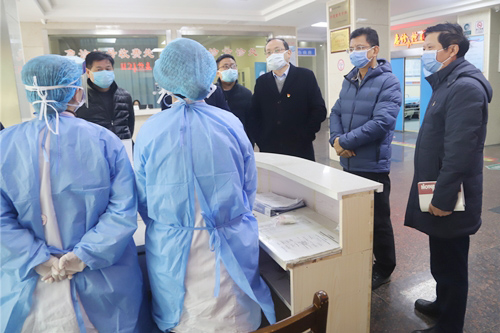 1月29日上午,校长刘晓东到附属医院检查指导新型冠状病毒感染肺炎防控工作。