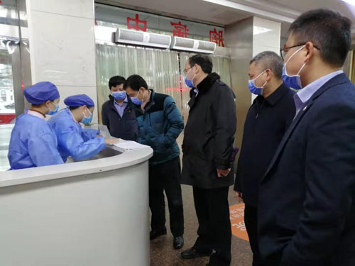 在附属医院党委书记张南华,党委副书记、副院长殷小平及其他在家班子的陪同下,杨耀防先后到预检分诊台、导医台、呼吸内科门诊、发热门诊等进行慰问和工作指导。杨耀防向奋战在疫情防控工作和临床工作一线的医务工作者和同志们表示衷心的感谢,并送上新春祝福。他强调,生命重于泰山,疫情就是命令,防控就是责任,要全员动员,加强疫情防控部署;要是严格规范诊疗流程,把人民群众生命安全和身体健康放在第一位,同时要注意自身防护,做好安全措施,多开窗通风,科学防治、精准施策;要保障留学生的健康,及时配发口罩,加强安全指导。