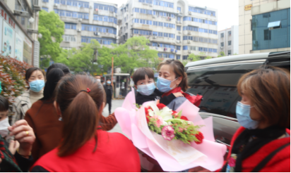 市卫健委党委委员徐端到场为在该处休整的援鄂医疗队护理队队员们举行了简短的欢送仪式,他代表九江市卫健委向全体队员表示了关心和敬意。随后,我们两位队员与在湖北一线共同奋斗几十天的战友一一拥抱道别,跟随医院领导和我院工作人员登车启程返回九江。