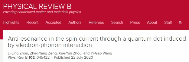 纳米结的一个重要特性是对定域分子振动(即声子)反应敏感,大多数纳米电子器件运行过程中电声耦合效应显著。费米子-玻色子相互作用是多粒子物理学基石之一。因此,对固体中电声相互作用的研究具有重要理论和实践意义。利用非平衡格林函数方法探索电声相互作用对暴露于射频场下的量子点自旋流影响,发现自旋流在拉比频率为声子频率整数倍处出现反共振现象,此现象表明不同自旋通道的电子波间产生了相消干涉。周利玲博士的研究成果可为改善纳米电子器件设计提供有价值参考,促进现代集成电路进一步微型化。