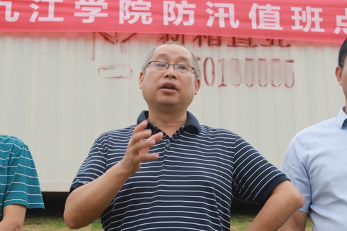 陈小林在演练后的总结讲话中指出,目前九江市区汛情形势严峻,学校按照市委、市政府的要求,在赛城湖堤坝的目标堤段实行了24小时值班。建立防汛抗洪突击队,就是为了能在出现险情的时候及时应急抢险。突击队员们要从思想上高度重视,24小时保持通讯联络的畅通;要有严明的纪律,出现险情快速反应、服从调配;要有细致的后勤保障工作,继续为我校的防汛抗洪工作提供坚实的基础保障。