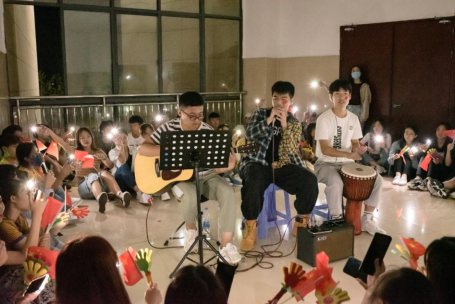 举杯邀明月,家国两团圆。为迎接国庆、中秋“双节”以及2020级新生的到来,九江学院艺术学院于10月1日晚7点在艺术大楼开展国庆中秋“快闪”校园主题活动。九江学院副校长查振华及艺术学院全体师生共同参加。
