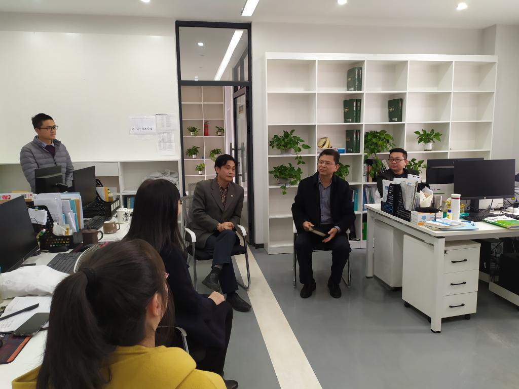 首先,刘晓东调研了油茶中心办公、实验场所的环境和条件,然后听取中心负责人汇报了中心在实验室建设、仪器设备采购、项目申报与研究等工作进度。通过座谈,刘晓东对油茶中心在科学研究、平台建设、管理机制及与职能部门沟通等方面的问题提供了指导和建议,并结合自己的科研经历,对所存在的问题和利用共享资源开展研究等方面,提出了解决思路和研究工作的方式方法。同时,他非常关心年轻教师的成长和提升,分享了自己研究工作的宝贵经历,并仔细询问了他们在科研、教学和生活中存在的困难。