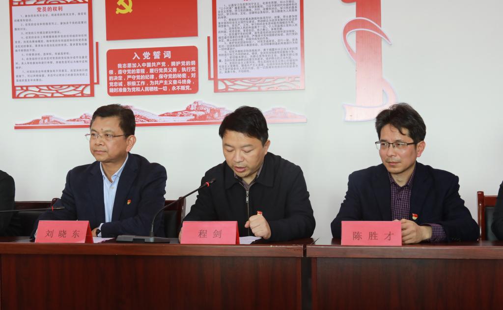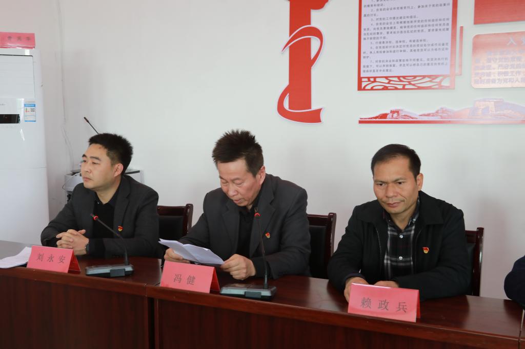 庐山市市委常委、统战部长程剑致辞;我校宣传部部长冯健同志宣读《九江学院——玉京村“学百年党史 促乡村振兴”文明实践活动方案》。