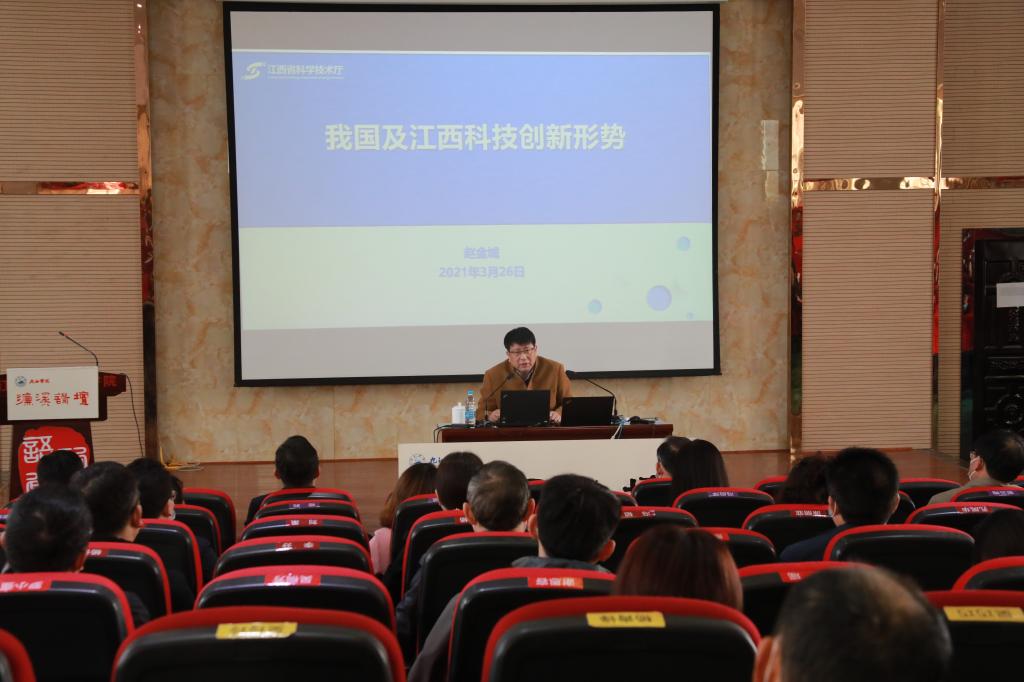 3月26日上午,第188期濂溪讲坛在香远楼报告厅举办,省科技厅一级巡视员赵金城以《我国及江西科技创新发展形式》为题,为我校师生带来一场精彩的讲座。