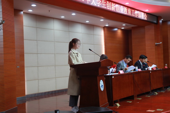 夏启国在会上宣读了《九江学院关于进一步深化和推进大学生创新创业教育工作的实施办法》。