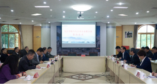 4月26日下午,我校与九江市企业联合会签约仪式在我校行政楼一号会议室举行。校党委书记赵伟热情会见了市企业联合会代表。校长刘晓东出席会议并讲话。副校长纪岗昌主持会议。市政府办公厅二级巡视员宋志龙,九江市企业联合会秘书长樊后晚,我校党委委员、党委宣传部部长冯健出席会议。