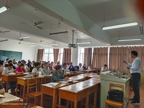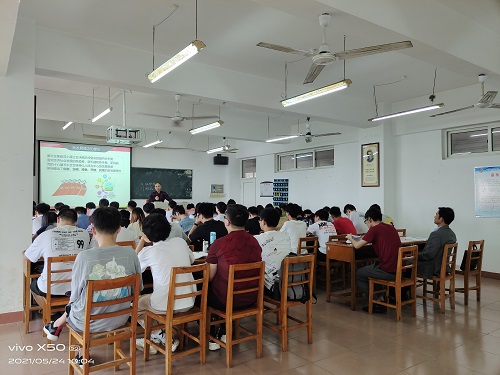 在竞知楼915教室,段善君博士为电信学院A1921班同学讲授《毛泽东思想和中国特色社会主义理论体系概论》课程,主要讲授了“五位一体”总体布局之建设现代化经济体系,着重阐释了党的十八届五中全会坚持以人民为中心的发展思想和创新、协调、绿色、开放、共享的新发展理念。