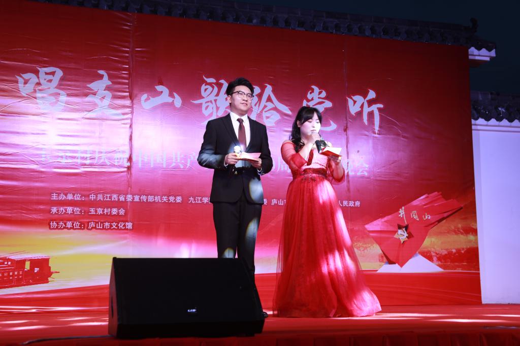 6月29日夜晚,庐山市玉京村新时代文明实践广场灯火璀璨,气氛喜庆热烈,由中共江西省委宣传部机关党委、我校党委宣传部、校团委、庐山市委宣传部、白鹿人民政府共同主办,玉京村委会承办,庐山市文化馆协办的“唱支山歌给党听”庆祝中国共产党成立100周年文艺晚会正在举行中。省委宣传部二级巡视员、机关党委专职副书记罗远东,庐山管理局党委书记、庐山市委书记李甫勇,我校党委副书记魏立平等与我校师生代表以及玉京村村民一同观看了本场晚会。