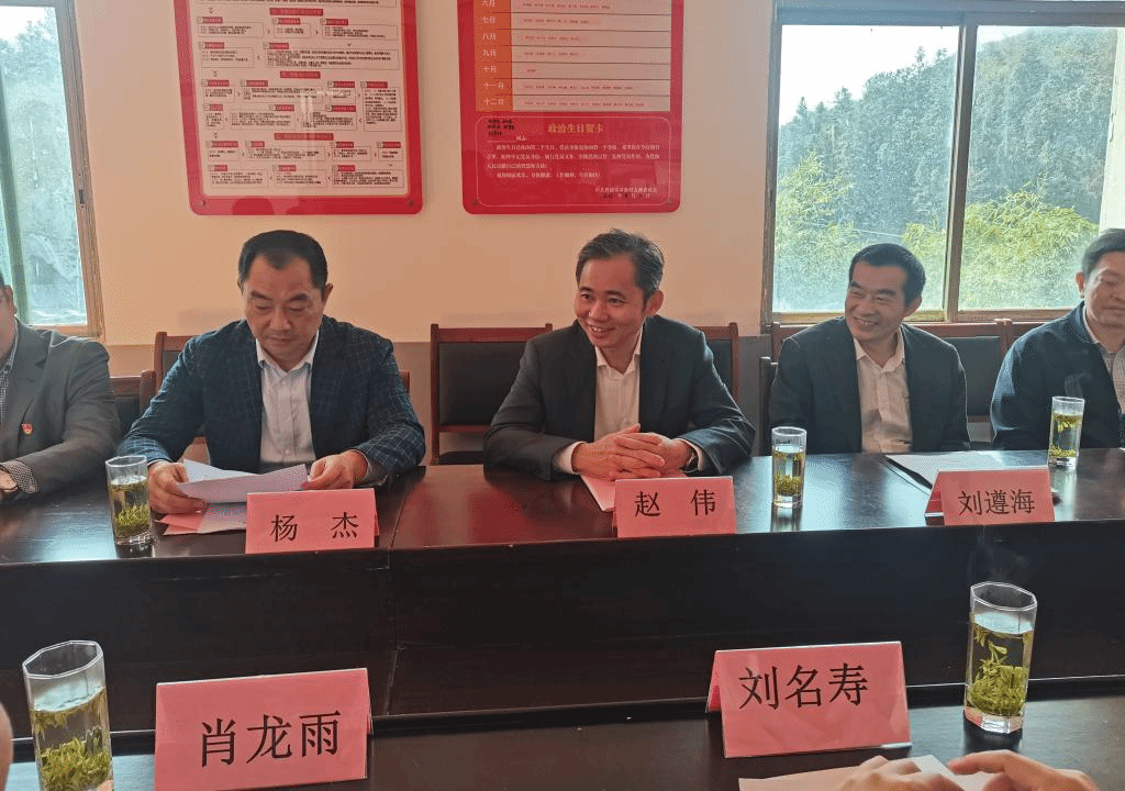 此次调研分为实地调研和座谈会两个部分。在双新村微型高山产业园,赵伟首先了解了双新村产业发展及乡村振兴产品——高山辣椒和黄金茶的种植情况,尤其是大棚种植、林下经济的发展情况。