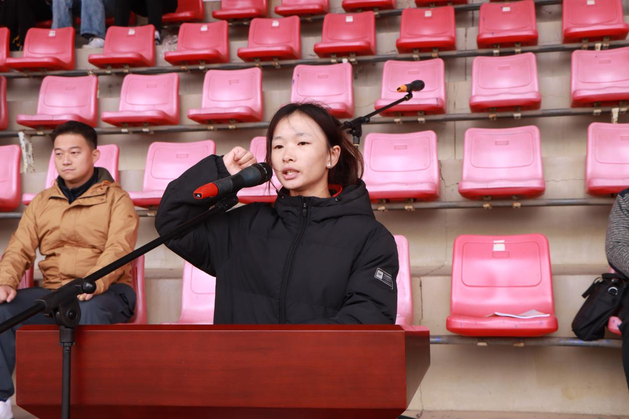 随后,运动员代表体育学院A2412班付西西与裁判员代表体育学院李放老师分别庄严宣誓。运动员代表承诺将遵守竞赛规则,以诚信与拼搏展现体育风采;裁判员代表则保证将秉持专业操守,公正裁决每一场比赛。