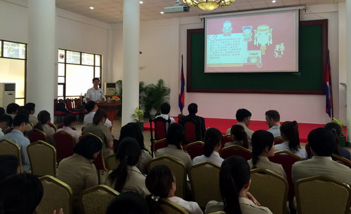 3月10,在中国传统春节的热潮还未消褪之际,柬埔寨王家研究院孔子学院参议院汉语中心举办中国传统节日文化讲座:春节与清明节。柬埔寨参议院信息与公共关系司司长基索科阁下(H.E. Khiev Sokhom)、柬埔寨王家研究院孔子学院院长谢莫尼勒(H.E. Chea Munyrith)阁下、中方院长帅式毅、参议院相关部门领导及汉语中心学员共100余人出席了讲座活动。