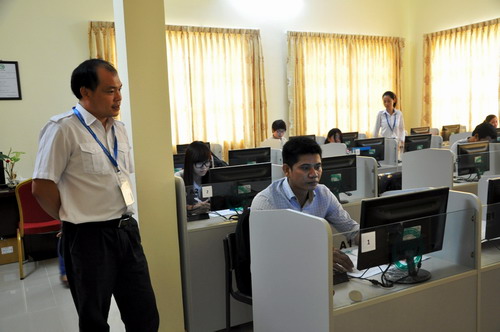 此次HSKK口语考试是柬埔寨首次开展的汉语口语水平考试。为了能够让学生更好的熟悉并适应考试流程,孔子学院考试中心免费为学生进行不同等级HSKK考前培训。经过孔子学院老师多次辛苦地讲解,学生能够熟练地操作HSKK考试流程。孔子学院高度重视首次HSKK考试,考试当天孔院进行了严格周密的考场安排和考务分工,并于考前召开考前例会,明确考试流程及要求,明晰每位考官的职责和义务,以确保考试的顺利进行。考试过程中,为了保证考试顺利进行,孔子学院监考老师在考试每一个环节,针对考试中药注意问题及对学生多发的问题及时总结并随时提醒学生。除此之外,监考老师在每一个考试环节都进行详细的指导和介绍说明,及时的检查学生信息的填写,以减少学生的信息错误。为保证考试公正公平的进行,中方院长帅式毅定时巡视考试现场,及时了解考试信息,使整个考试过程有序顺利的开展。