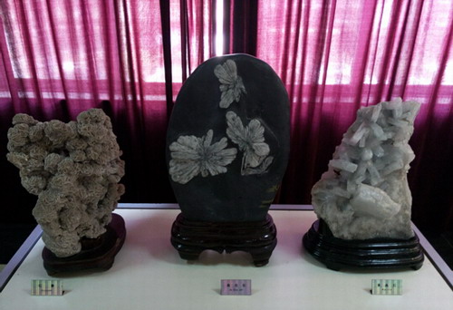 调研小组受到江西省地质矿产勘查开发局彭局长和江西地质博物馆杨馆长的热情接待。杨馆长介绍了江西省地质博物馆基本情况,对各个展厅进行了详细介绍,包括展厅设计、建设、陈列标本等。李院长对彭局长和杨馆长的热情接待表示感谢,并介绍了此次调研的目的。李院长介绍了旅游与国土资源学院地质陈列室的建设情况,并希望今后能与省地质博物馆进行更多的交流和合作。调研结束,杨馆长代表省地质博物馆赠送了一批江西省地域特色的矿石标本,以表示对我院实验室建设的支持。