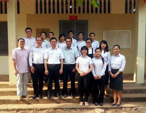 “五一”劳动节前夕,柬埔寨王家研究院孔子学院院长谢莫尼勒(Chea Munyrith)、中方院长帅式毅走访孔子学院吴哥高中孔子课堂、联邦国际学院、吴哥中国免税店教学点及棉芷大学中文系,慰问公派教师和志愿者,解决教学和生活中的具体问题。