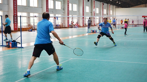 整场比赛分上午和下午进行。上午,单打比赛拉开战幕。熟悉的面孔、陌生的场地、趣味的规则、爽朗的笑声,选手们俨然把比赛当成了一场聚会、一场交流。男子单打比赛中,种子选手轮空小组赛给了许多羽毛球爱好者一展风采的机会,羽毛球在各个场地上不断划出美丽的弧线,至于是降落在了场内还是场外,这丝毫没有影响到大家的心情。女子单打比赛中,巾帼们更愿意让羽毛球在天上多飞一会儿,如此往复,乐此不彼。进入淘汰赛阶段,火药味越加浓厚,新晋的羽坛新秀碰上了当下的种子选手,是较量、是交流?这些味道夹杂在羽毛球飞速的旋转和升降中。