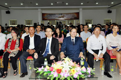5月19日,第十四届“汉语桥”世界大学生中文比赛柬埔寨分赛区决赛在金边亚欧大学金色大楼13楼会议厅举行。来自4所大学的30名选手报名参赛,经过初赛和复赛,共有12名大学生进入决赛。中国驻柬埔寨政务参赞檀勍生先生、柬埔寨文化部国务秘书索姆索昆阁下(H.E. Mr. Som Sokun)、柬埔寨王家研究院孔子学院院长谢莫尼勒(Chea Munyrith)、中方院长帅式毅、亚欧大学副校长陈绍旺(Chhoeun Savorn),部分在柬中资企业负责人、亚欧大学师生代表、孔子学院教师志愿者等约300人出席观看了决赛。
