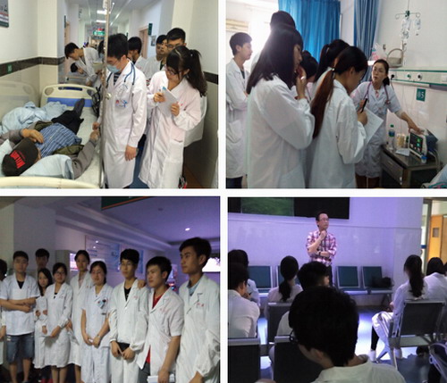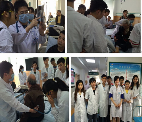 5月7日上午,2013级临床医学农村定向班医学生来到附属医院住院部呼吸内科见习,学生分为四组,在呼吸内科余老师,何老师等四位老师亲自指导下,同学们跟随者带教老师一起查病房,看病人,详细记录着病人的症状体征及老师对病情的分析和临床知识的讲解,了解了医生的查房过程,学习了慢性阻塞性肺病及肺炎等常见病的临床表现,相关辅助检查,诊断及治疗原则,四位带教老师认真负责,专业知识扎实,通过临床病例同学们将解剖、病理和临床相关知识联系起来,受益匪浅。