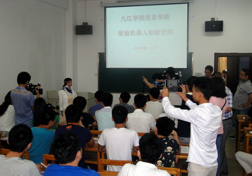 近日,我校信息学院张广顺研发团队研制的美女机器人小美老师为学生上课的消息,引发了省市媒体的关注。众多媒体记者纷纷要求来校采访报道。6月3日下午,党委宣传部和信息学院联合在厚德楼521召开“美女机器人媒体介绍会”,向媒体全面展示机器人小美讲课的风采和研发过程和体会。江西日报、江南都市报、信息日报、中国江西网、今视网、九江日报、九江广播电视台等省市媒体近20名记者及党委宣传部、信息学院相关领导、机器人研发团队成员参加了介绍会。党委宣传部副部长何桂林主持会议。
