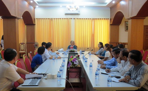 6月5日,柬埔寨王家研究院孔子学院在王家研究院礼堂隆重举行官员班及 “汉语桥”选手赴华欢送座谈会。柬埔寨王家研究院院长、孔子学院理事长克罗媞达(H.E. Khlot Thyda)阁下、孔子学院院长谢莫尼勒阁下(H.E. Chea Munyrith)、孔子学院中方院有代表性的古都之一;九江是孔子学院中方承办院校所在地,有着悠久的历史和深厚长帅式毅出席座谈会。来自柬埔寨总理府内阁办公厅、参议院、劳工部的官员汉语班的优秀学员,第十四届“汉语桥”世界大学生中文比赛柬埔寨分赛区、第八届“汉语桥”世界中学生中文比赛柬埔寨分赛区的优胜选手及孔子学院师生约50余人参与了此次活动。欢送会由谢莫尼勒主持。