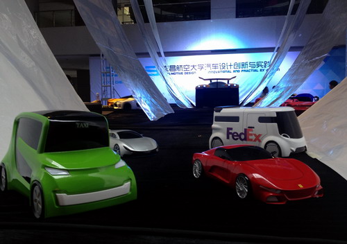 近日,吴小亮主任和詹伟国老师来到了南昌航空大学图书馆参加了南昌航空大学汽车设计创新与实践展。此次展览由来自江铃汽车集团和南昌航空大学师生设计的作品组成,展出内容有20多款实体汽车、大四学生设计的概念汽车模型及汽车设计详细展板等。在详细参观展出作品后,两位老师与南昌航空大学艺术与设计学院院长熊建新教授、工业设计系主任蔡克忠副教授和江铃的汽车设计专家开展交流,就工业设计专业的培养模式、专业未来发展方向和实践教学方式进行了探讨。
